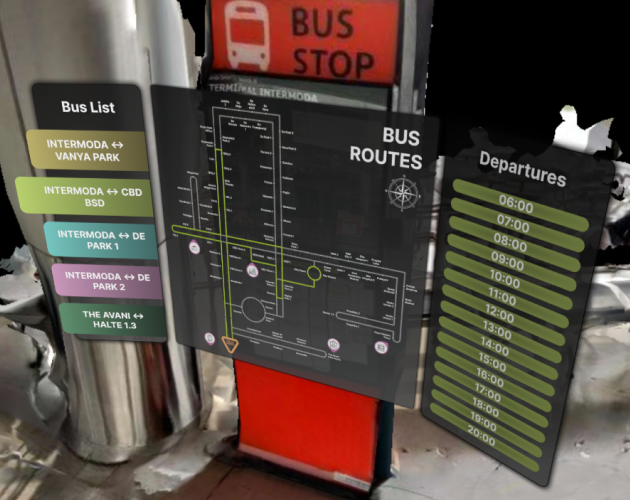 Route AR transforms public transit navigation by turning static bus stop boards into interactive AR experiences using Niantic VPS. With a simple scan, users access an overlaid AR map that displays bus routes, departure schedules, and nearby points of interest—all anchored precisely to real-world locations.